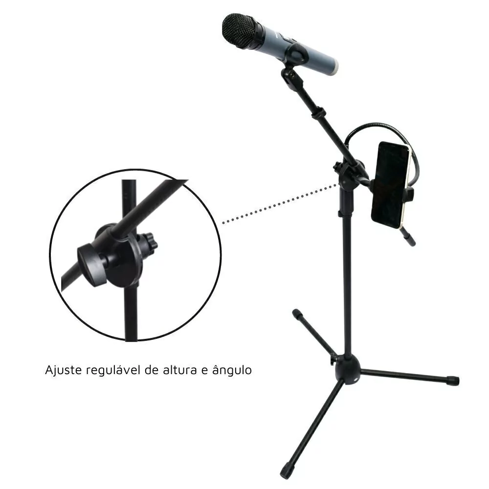 Pedestal para Microfone com Suporte para Celular